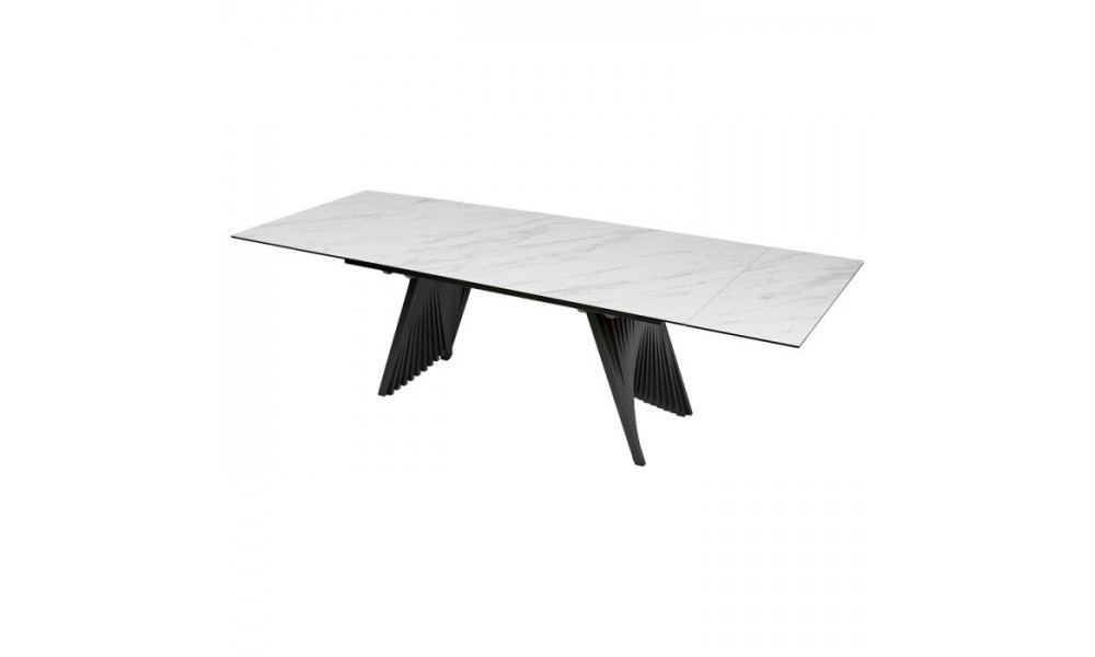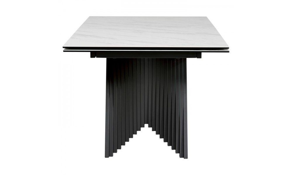 Стол "Ivar" - раскладной обеденный стол. Две боковые вставки по 40 см. Основание из металла с порошковой окраской черного цвета. Столешница из итальянской керамики 3 мм на стекле 8 мм . Не боится влаги и не впитывает загрязнения. Столешница изготавливается из цельной керамической плиты, что придает ей исключительную ударопрочность, устойчивость к мелким повреждениям (царапинам, сколам), а также высокой температуре. Размер: 1800/2600х980х760