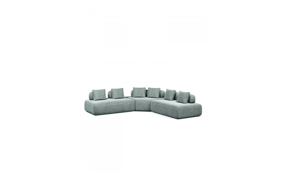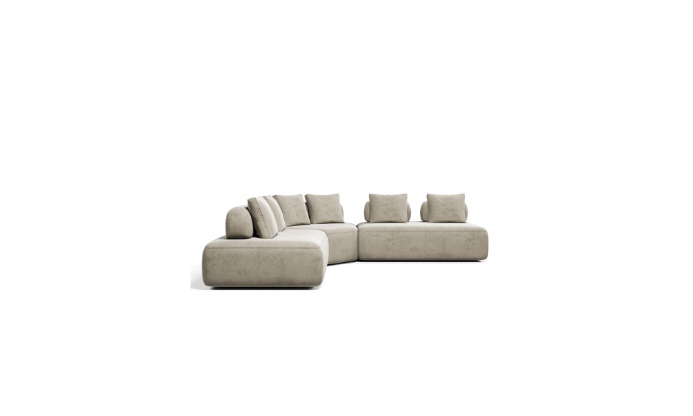 Диван угловой "Бруно" - элегантный угловой диван с пышными мягкими подушками и плавно закругленными краями, излучает современную утонченность и уютную привлекательность.