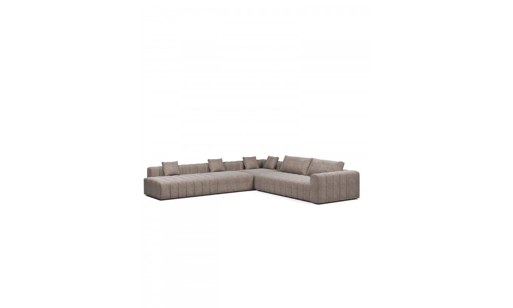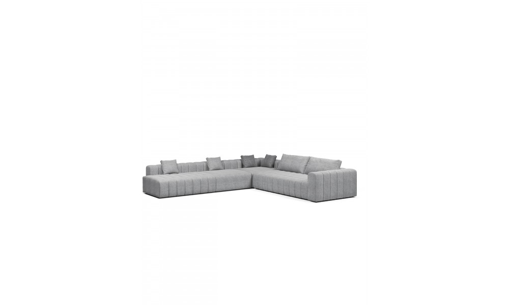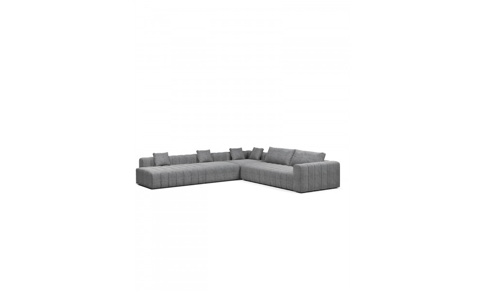 Диван угловой "Токио" - стильный угловой диван в современном дизайне, с четкими геометрическими формами, вертикальными строчками на обивке и уютными прямоугольными подушками.