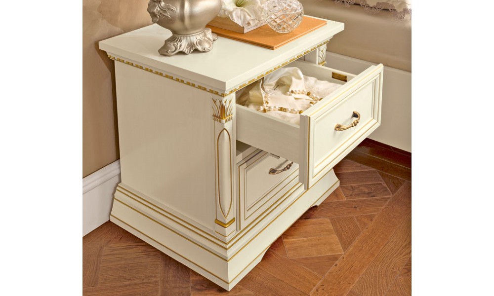 Спальня "Тревизо" - выполненная в классическом стиле из массива натуральной древесины покрытой шпоном. Мебель характеризуется высокой надежностью, прочностью и функциональностью. В качестве отделки мебели Treviso используются лаки и краски из нетоксичных средств на водной основе с дальнейшим искусственным старением древесины. В качестве декора итальянской мебели Treviso мастера фабрики CAMELGROUP используют тонкую резьбу по дереву, что придает изделиям богатый и неповторимый внешний вид.Цена указана за кровать и две тумбочки. Цены на нужную комплектацию можно узнать по телефону или в нашем мебельном салоне.