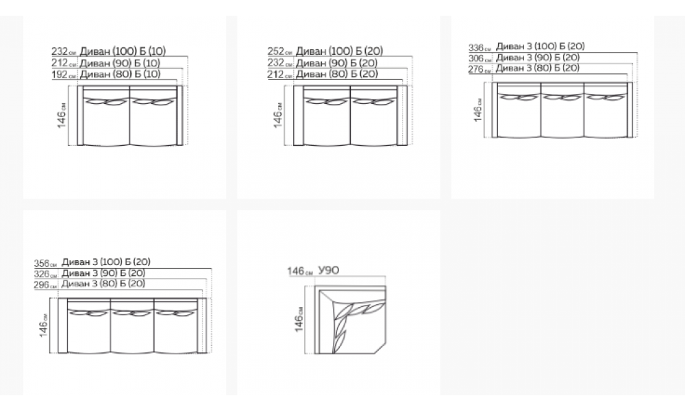 • Размеры (Д x Ш x В): 356 x 146 x 88 см