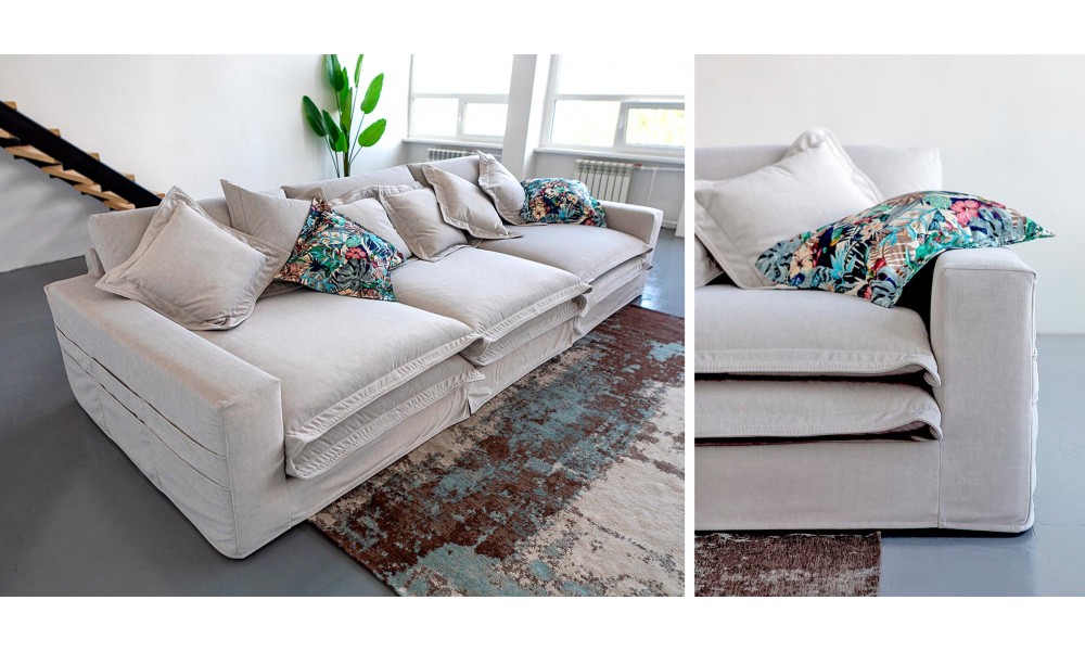 Диван Каир - простое и современное решение для тех, кто любит максимальный комфорт и трендовый дизайн.  Игра больших объемов и мягких форм - особенность дивана Каир. Сочетание двух мягких подушек сидения и большой глубины создают просторное место для домашнего отдыха. Глубина подушек сиденья и их оригинальный внутренний состав из наполнителей позволит с комфортом разместиться на диване. Цена указана за диван в 7 категории ткани.