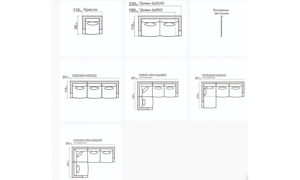 • Размеры (Д x Ш x В): 331 x 195 x 108 см