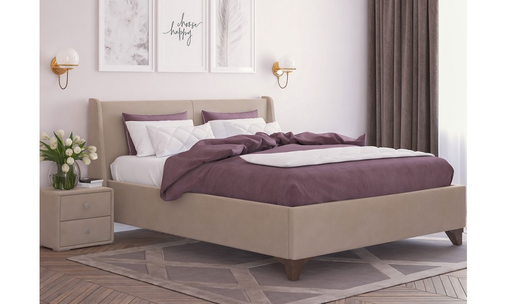 Кровать "Лорен" - имеет современный, оригинальный дизайн, подъемный механизм, ортопедическое основание из березовых ламелей, ящик для белья с дном из МДФ толщиной 8 мм и отделение для хранения крупногабаритных вещей, мягкое изголовье с обивкой "Велюр" на ортопедической пене с отстрочкой по центру в цвет. Царги выполнены из ДСП толщиной 16 мм, глубина залегания матраса 3 см. Высота от пола до царг 12 см.