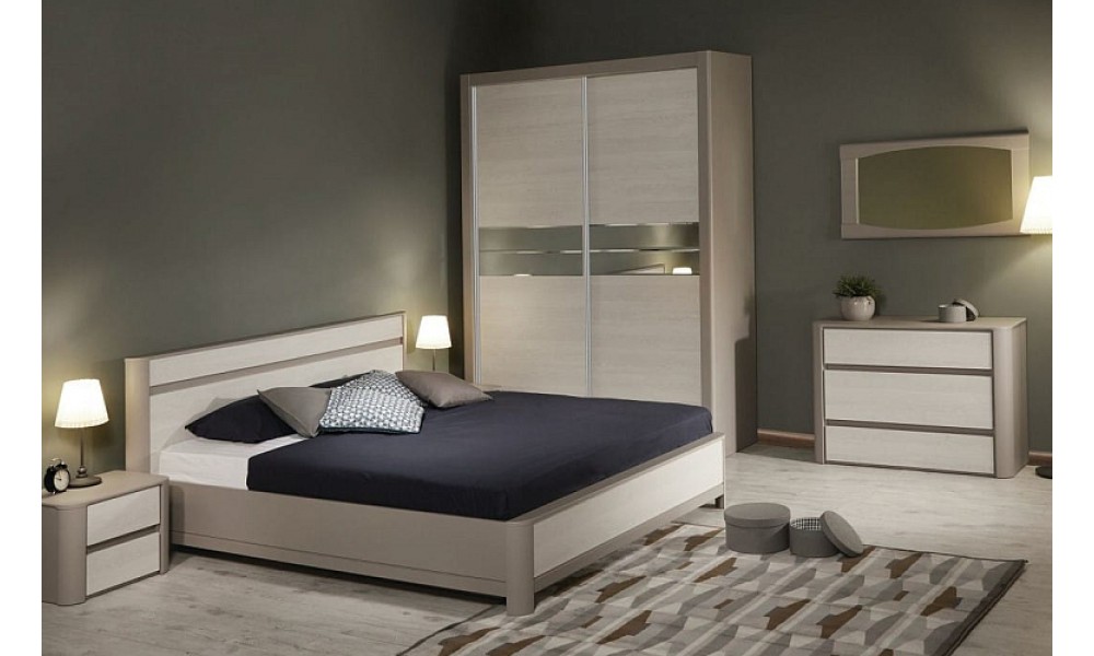 Спальня "Лацио" - украсит пространство,сделает его легким и уютным.Спокойные тона и фактуры,задействованные в данной мебели,располагают к отдыху.Сочетание глубокого серого и светлого оттенков исключают громоздкость и помогают достичь эффекта зрительного увеличения пространства.В цену входит: кровать со спальным местом 1600х2000,2 тумбы, комод,зеркало,шкаф 4-дверный.Цены на нужную комплектацию уточняйте по телефону.