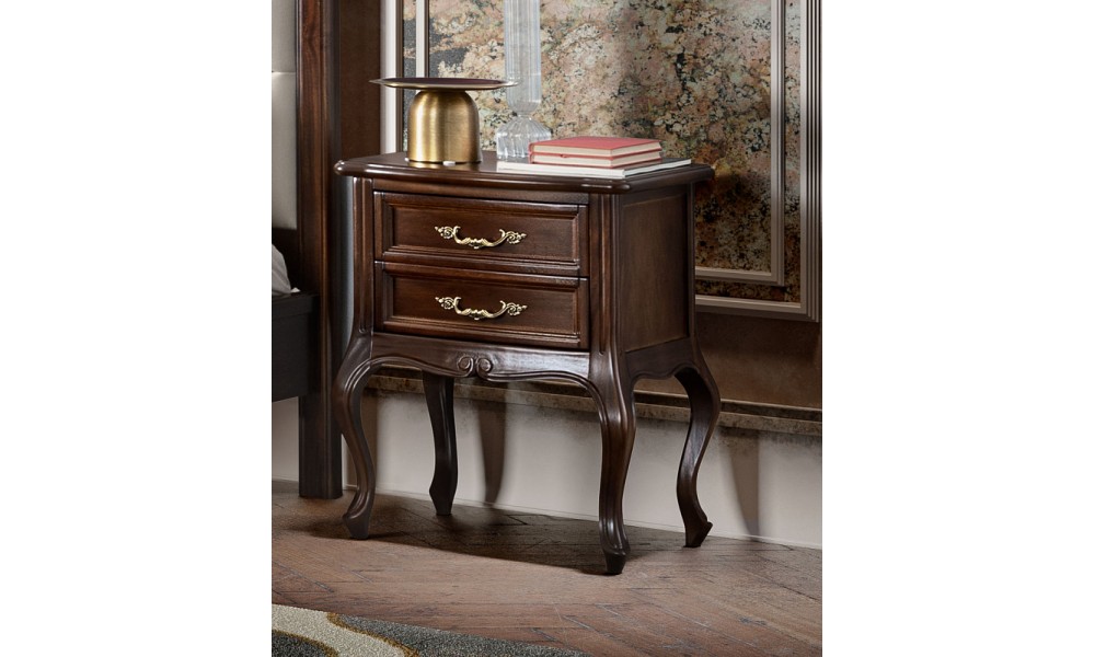 Спальня "Verdi" орех - потрясающая и роскошная спальня ручной работы из массива дерева. Ручная роспись в благородных цветах слоновой кости, античного ореха и темно-серого с темными акцентами. Классические формы с элементами декора выполненными в лучших традициях исконно итальянских краснодеревщиков. Плавно изогнутые фасады выдвижных ящиков, ножки ручной работы.