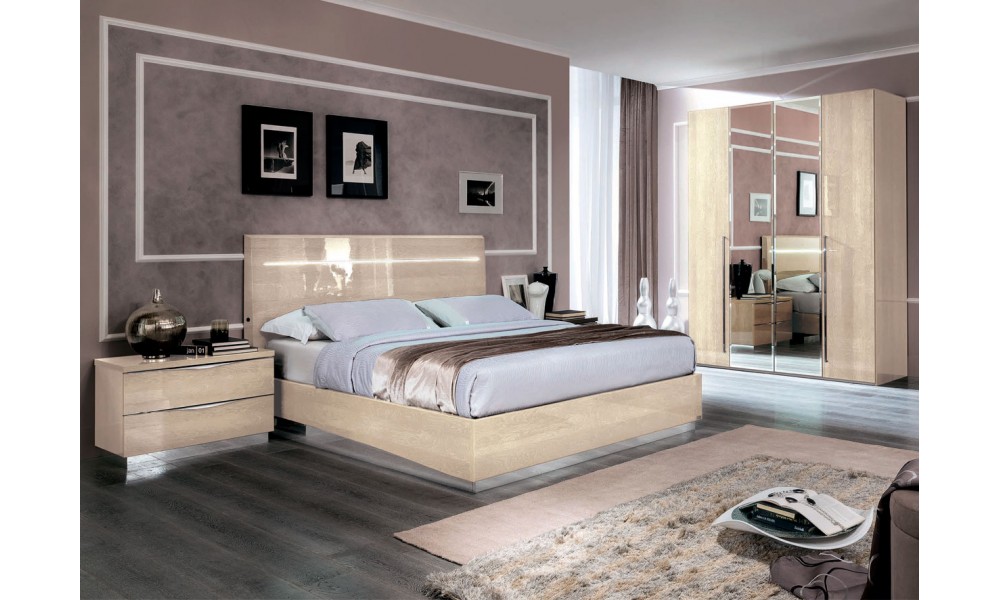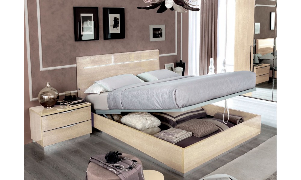Спальня "Платинум" янтарная береза - благодаря приятному и мягкому цвету покрытия Янтарной березы ,принесет в дом тепло и уют. А контрастная фурнитура, цвета темного никеля, добавит нужные детали интерьеру. Лаконичные формы глянцевых поверхностей в сочетании с мягкими элементами из бархатистого эко-нубука удачно сочетают стиль и уют в едином пространстве.Кровати, могут быть оснащены вместительным контейнером для белья, расположенным под матрасом. Решётка матраса легко поднимается при помощи подъёмного механизма, обеспечивая быстрый и лёгкий доступ к вещам.